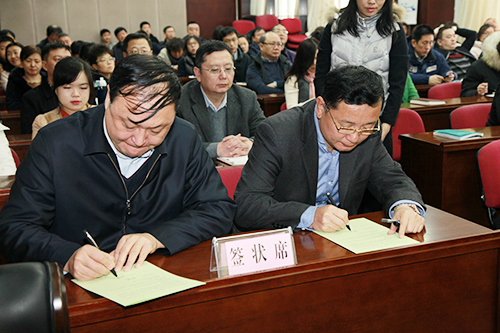 局领导班子和机关处室在主会场,各分局、局属单位、执法监察局分别在9个分会场同步参加会议。会议由党组成员、副局长于亚滨主持,党组成员、副局长宋立伟传达了住建部和省市相关会议精神,党组书记、局长王宏新与相关责任人签订了党风廉政建设和反腐败工作责任书并作年度工作报告。